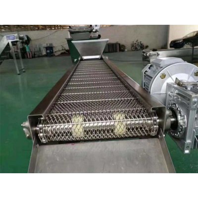 网带输送机是在一定的线路上连续输送物料的物料搬运机械,又称连续输送机,可分为网带式和网链式。输送机可进行水平、倾斜和垂直输送,也可组成空间输送线路,输送线路一般是固定的。输送机输送能力大,运距长,还可在输送过程中同时完成若干工艺操作.